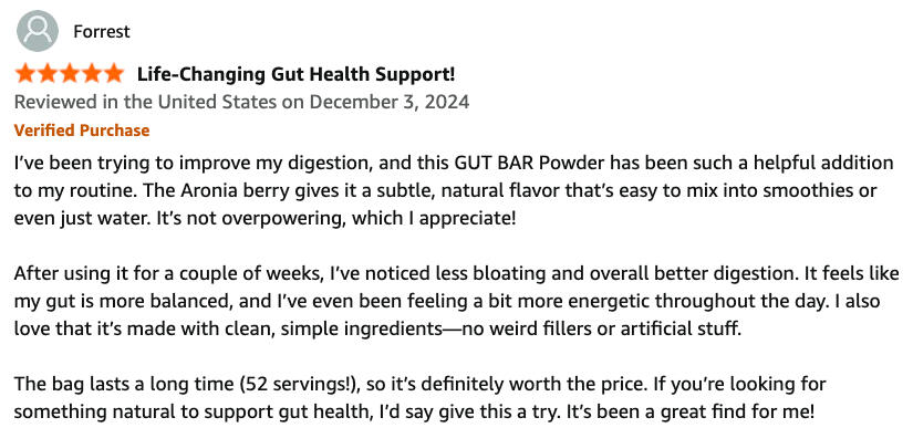 You start cutting foods, adding probiotics, chugging “gut health” drinks — but nothing actually helps.Gut Bar Aronia Berry Powder was made for people who are done guessing what’s wrong with their gut.